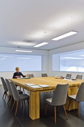 Soft, comfortable, direct and indirect lighting distribution and a decisive, rigorous design that both furnishes and blends with any environment.