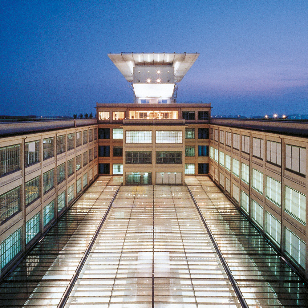 Its quintessential industrial yellow touch stands out from the cement grey, calling to mind its origin: the 1987 reconversion of the historic Fiat factory in Torino, by architect Renzo Piano. The design, conceived to enhance the building, embodies the High-Tech style and reflects an era of great technological and industrial development.