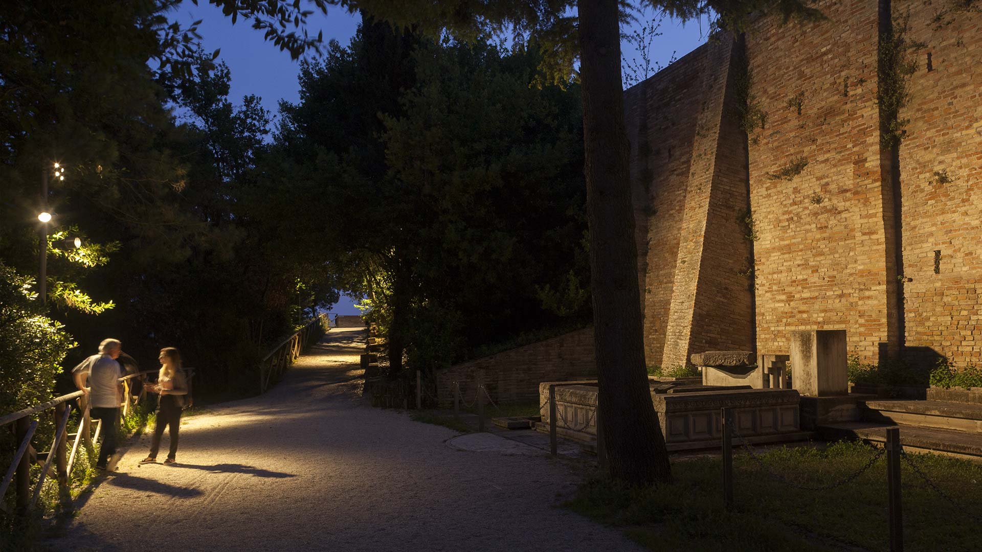 Screened light along pedestrian areas
