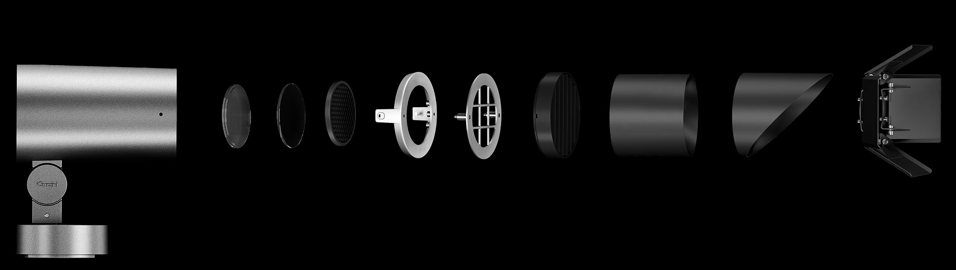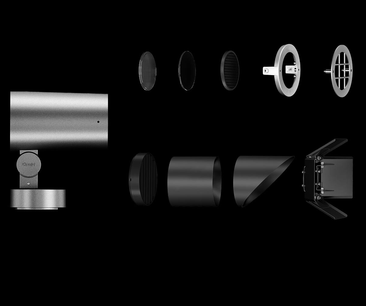 Ultra-compact, high-intensity optic, the light beam is even and well defined with no colour aberrations. Maximum visual comfort is guaranteed by a spill-ring inside.