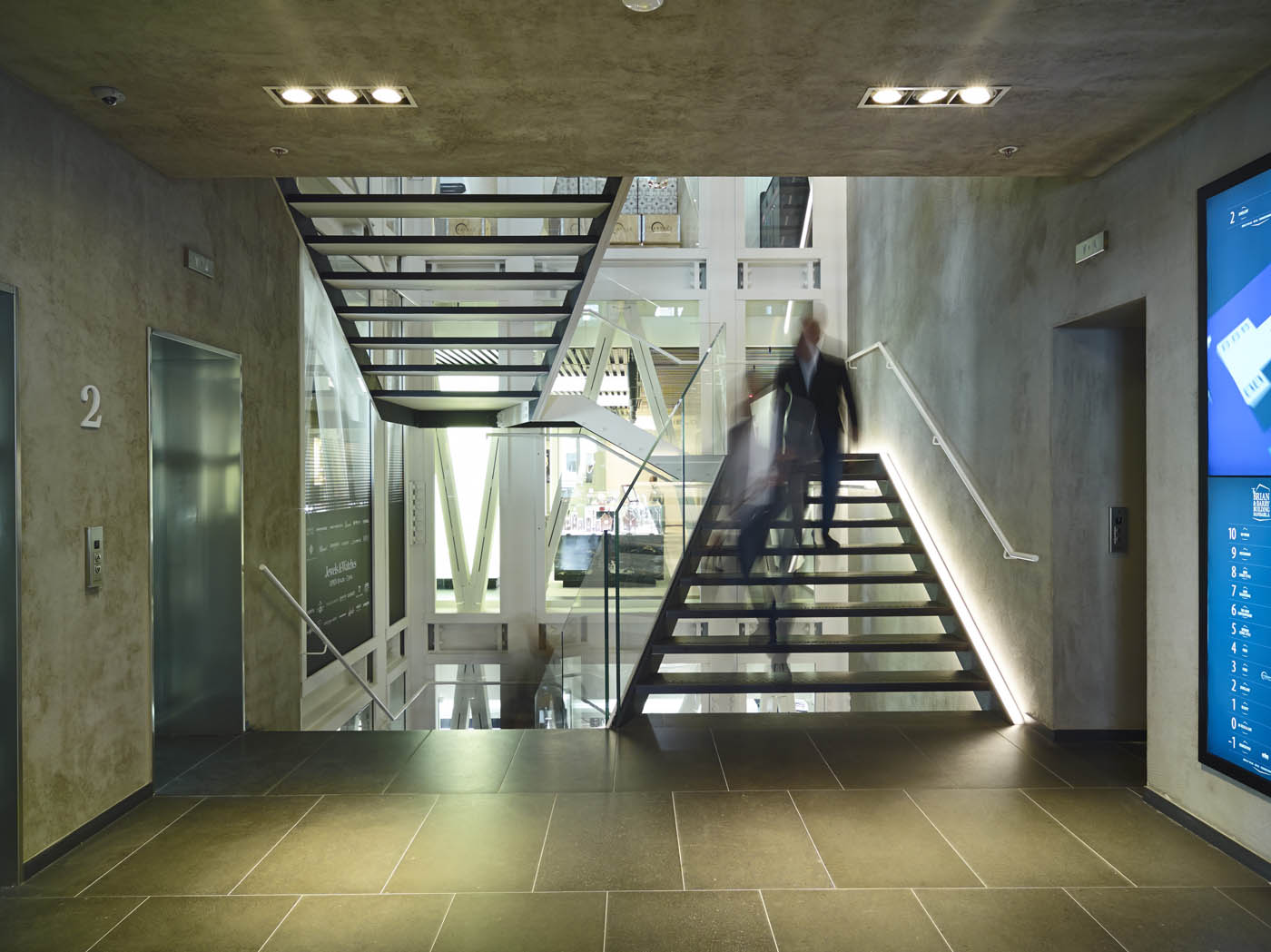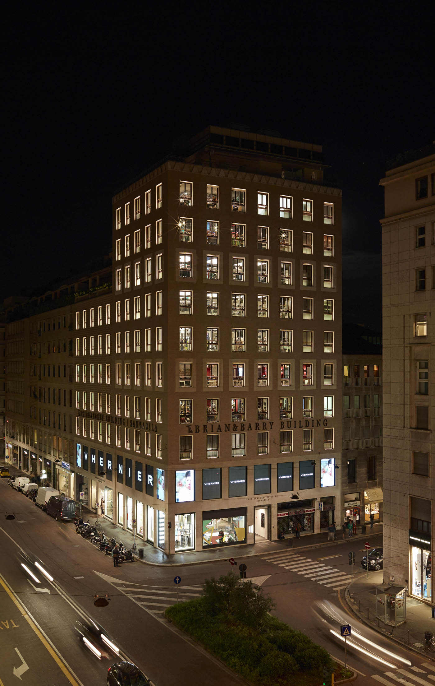 Food, cosmetics, design, free time, fashion and two panoramic terraces with spectacular views over Milan in twelve integrated floors of top quality shopping. The Brian&Barry Building is part of a historic 1950s palazzo that stands on the corner of via Durini and via Borgogna, near piazza San Babila in Milan. It is a new department store experience that brings together a combination of retail sectors, all of which share the same top class quality. In the store's nine retail floors the various outlets are deliberately alternated to enhance their individual image and this is emphasized by both general and accent lighting. The former luminaires are inserted in the barrisol designs that hang below the ceiling by ten or so centimetres. They consist of 3000 and 4000K Led Strips spaced at an interval of 20cm, so the canvas designs are lit evenly and according to the colours specified by the designer. These luminaires are all controlled by an LMS Quick management system. To create the accent lighting, on the other hand, Front Light LEDs have been installed on tracks built into the metal framework of the suspended ceilings so they can be easily adapted to suit the kind of furnishing on each floor. The high chromatic index of these spotlights (CRI>90) guarantees an excellent yield that is particularly important for enhancing the products displayed. The white metalwork stairs are accompanied by a set of panoramic escalators that not only connect the various floors, but also constitute a living sculpture that is constantly in motion at the heart of the building. They are lit by a double line of Led Strips hidden in the narrow space between the metal profile of the stairs and the wall. Compact and efficient, iGuzzini Linealuce Mini luminaires have been installed on the sills of all the building's large windows. This animates the products on display by means of a management system that creates a series of light scenarios and effects that turn the facade into an unforgettable spectacle even at night.