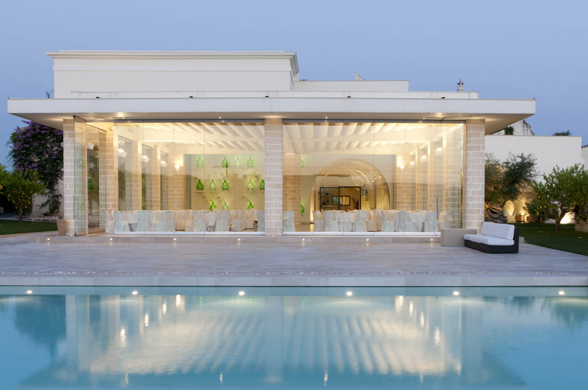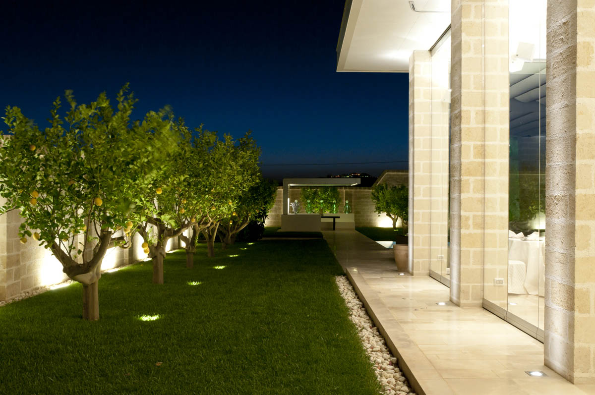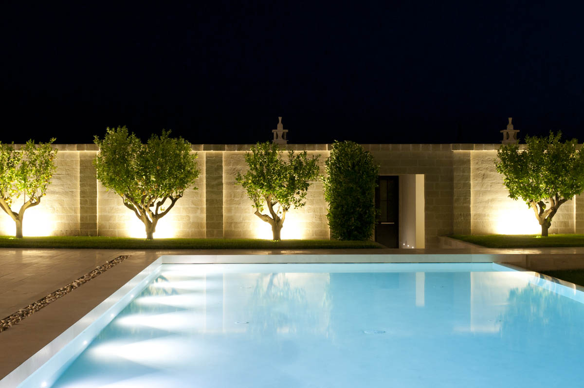The Ciura manor farm was built in the early '600 in Massafra at the behest of the Ciura barons family and became famous "for several reasons, first of all, the harmony of the relationship between territory and enterprise, that are perfectly in balance, in continuity with the past but looking to the future ". this principle was also respected in the recent restoration. In the relationship between architecture and growth, Ciura manor farm represents an example in contrast with the trend to overbuilding, just for the respect of the territory. It is one of the best examples of noble residence and is located in a 60-hectare estate, just few kilometers from the sea. The restoration project, by architect Mauro Lanotte, has resulted in a long preliminary work of analysis of layered architectural sequences over time. After the project of restoration and conservative renewal of the party dates back to 1626, the conversion and expansion were that portion of the old building complex that was dedicated to agricultural and livestock activities, and allocated to tourist hotel structure. The restoration has respected the accurate reconstruction of the built historic environment with new spaces, such as "Kubo glass" so defined by architect Mauro Lanotte of EsseElle Associates. Inside the manor farm, two large rooms in tuff with vaulted ceilings and a star are connected to Kubo crystal immersed in a lemon grove and overlooking the pool. The lighting for this new area is based on minimum visual impact devices that underscore the precious elements and characterize these new elements: the Light Up Garden, emphasize the lemon trees and their fruits; Linealuce fittings and their grazing light emphasize the surface of the ancient enclosure wall of the estate, while the white iPro used for the lighting Kubo chromatically reminiscent chose the pieces of furniture and contemporary architectural interventions. The architectural quality of the intervention is such that the Ciura manor farm Massafra, was invited to the 13th International Architectural Exhibition, directed by David Chipperfield. The old manor farm has been inserted into the theme of the Italian Pavilion of the Biennale dedicated to sustainability, work and creativity.