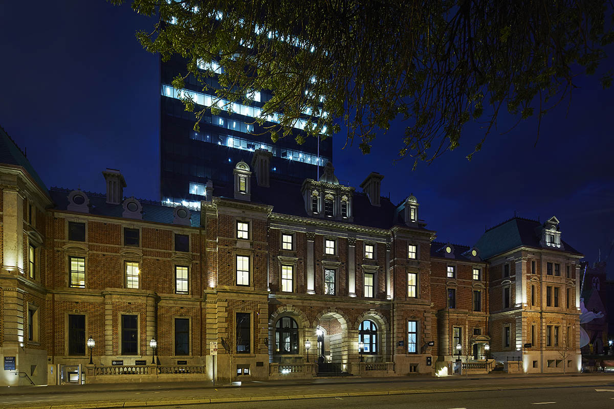 The State Buildings, situated in the centre of Perth, are three interconnected heritage buildings bordered by St Georges Terrace and Barrack Street. Despite their strategic position, for about twenty years these buildings were left forgotten and neglected. A recent refurbishment project, however, has restored them to their former glory and put them back at the centre of the city's social life.
