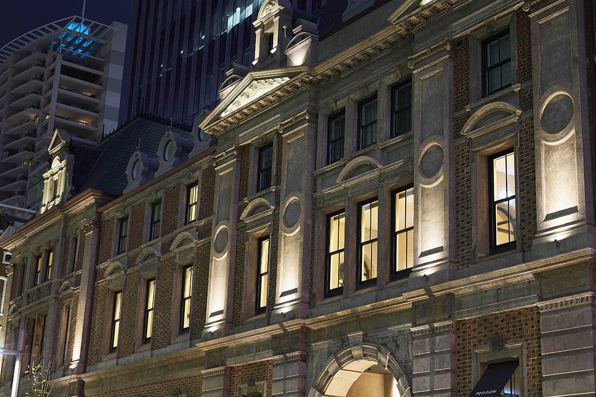 The lighting for the exteriors is discreet, but still important. Only a limited number of luminaires have been installed, but they have been chosen with the utmost care. To be more precise, iPro Mini and Micro luminaires illuminate the columns and gables without cluttering up the architectural features of the historical facades. These devices expertly incorporate the ambient light created by the street lamps in St. Georges Terrace. To ensure that the street looks exactly the way it used to, these lamps have been lovingly restored on the basis of vintage photographic evidence. In this interplay between old and new, then, light plays an important role to absolute perfection.