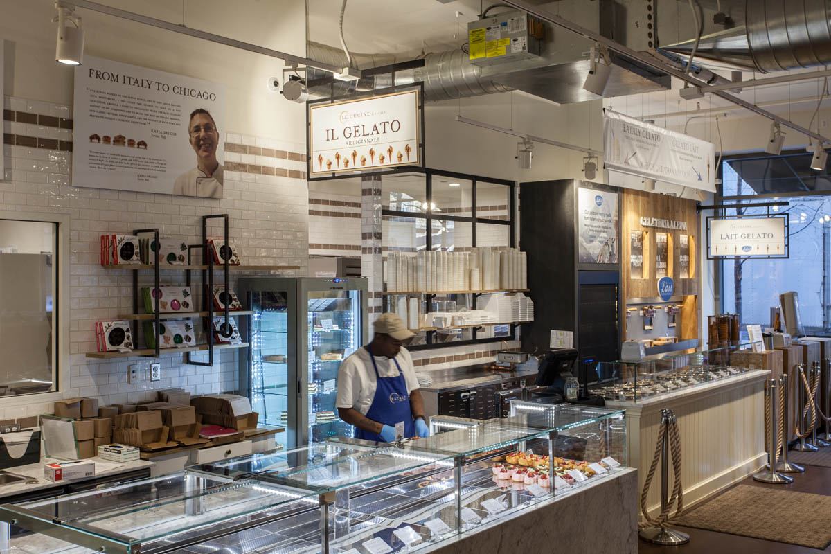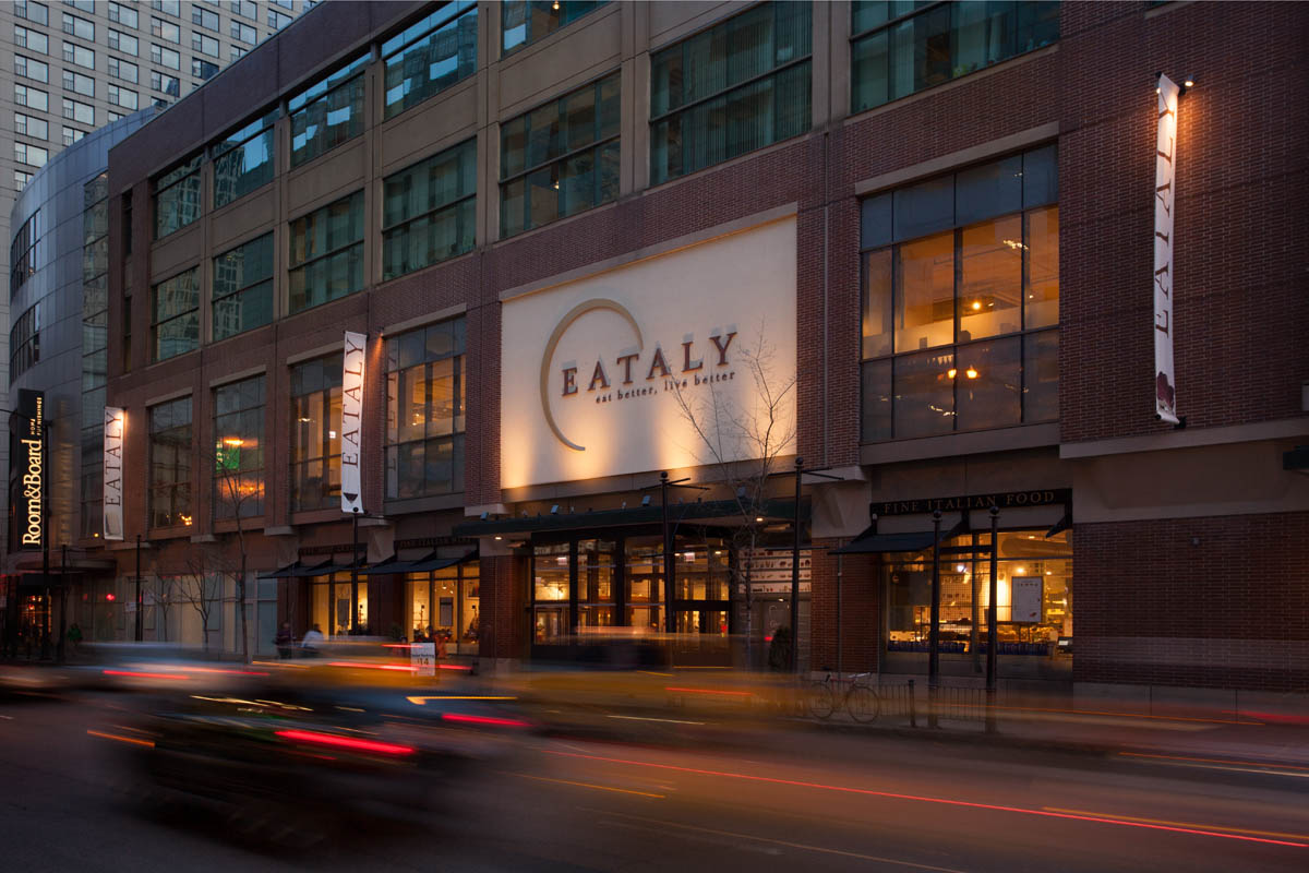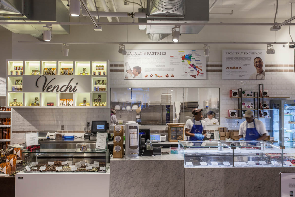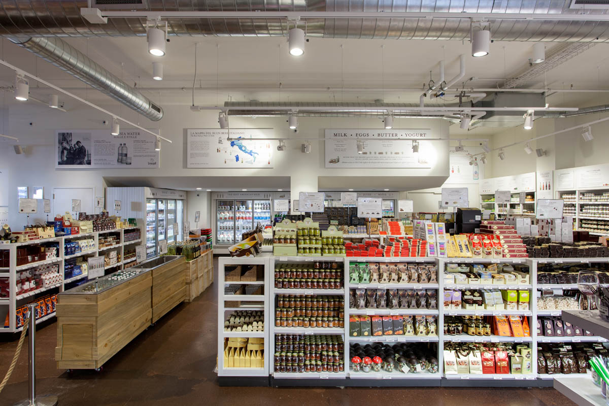 Eataly doubles its presence in America and confirms iGuzzini as its lighting partner. After New York, the Italian food giant opens in Chicago, too, with the same format and an even wider choice. With 22 restaurants and food counters, a cooking school, food store, wine store, bookshop and much more, Eataly is a unique, 6,000 square metre megastore that enables fine Italian food to be enjoyed overseas. And not only, as Eataly’s stated mission is to encourage home cooking by making top quality products available for purchase. To create the lighting system for the store, our office in New York worked closely with lighting designers from Hugh Lighting Design, making numerous on-site inspections to ensure that everything matched the classic Eataly format perfectly. To light the display and bar areas, small size, 2000lm, iGuzzini Front Light luminaires have been installed on tracks. This simple, essential product is a fine combination of design and low cost, style and functionality. The restaurants, on the other hand, are lit with frame version, recessed Laser Blade luminaires: a linear product that offers both spectacular effects and a highly efficient light yield.