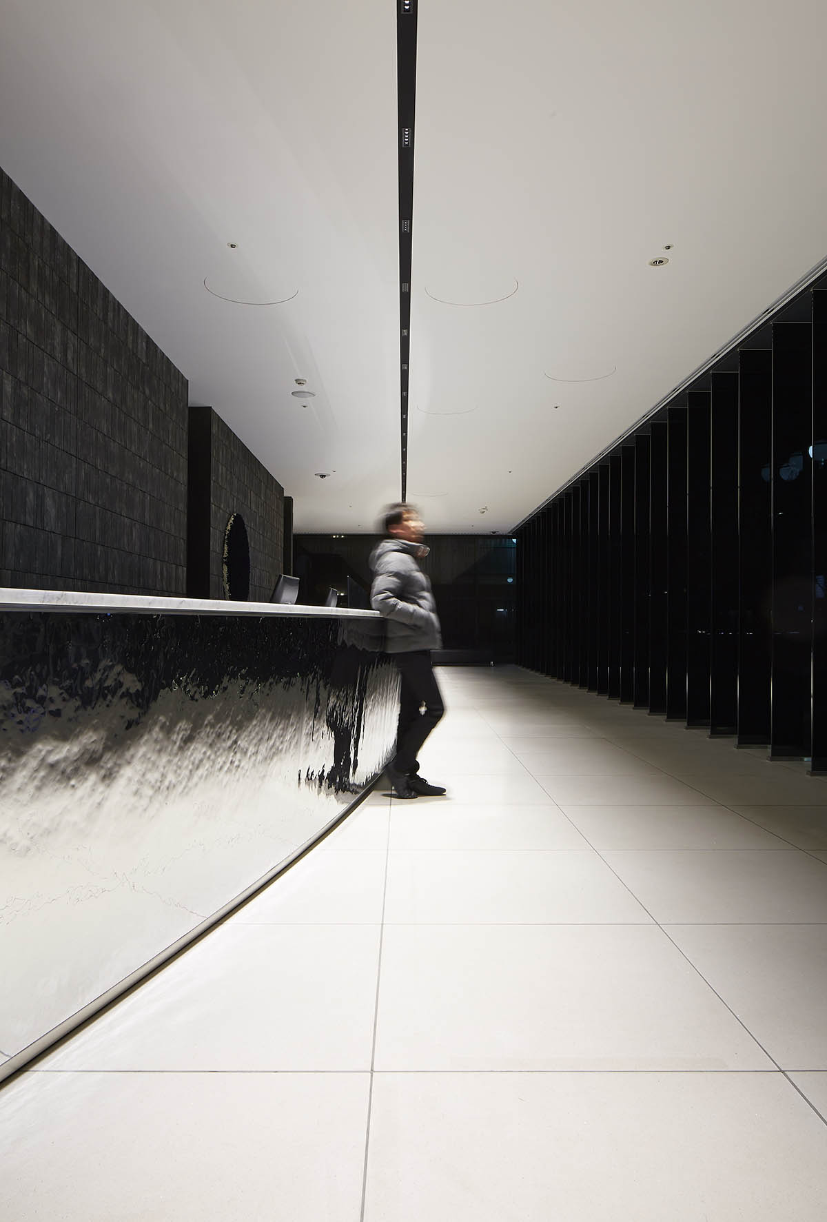The Hakata Green Hotel No.1 is located in Fukuoka, the most densely populated city on the island of Kyūshū in Japan. On account of its position, the city is a base for cultural and economic exchanges between Japan and the rest of Asia, and is therefore visited for both business and tourism. Curiously, the city is also famous for being the birthplace of numerous Japanese singers. The Hakata Green Hotel is one of the many hotels that welcome visitors to the city, but it is the only one that boasts a lighting system designed by Hiroyasu Shoji, head of the LightDesign studio and self-styled “connoisseur of light”. The project focuses on the reception area, the all-important zone where guests are welcomed to the hotel and form their very first impressions that often remain with them throughout their stay. The lighting therefore, seeks to enhance the hotel's qualities of professional expertise, service and customer care. For this area, Sosji has chosen to create an atmosphere with soft, homogeneous lighting that interacts with the different textures of the interior design that include a reception counter with a reflective vertical surface that changes constantly and dark grey surrounding walls with a distinctive natural finish. The overall effect is a series of pleasant contrasts and alternating chiaroscuro effects thanks to the interplay of matt and gloss surfaces. The light streams down from a dark channel that cuts a sharp line across the white ceiling and hides the recessed Laser Blade luminaires inside it.