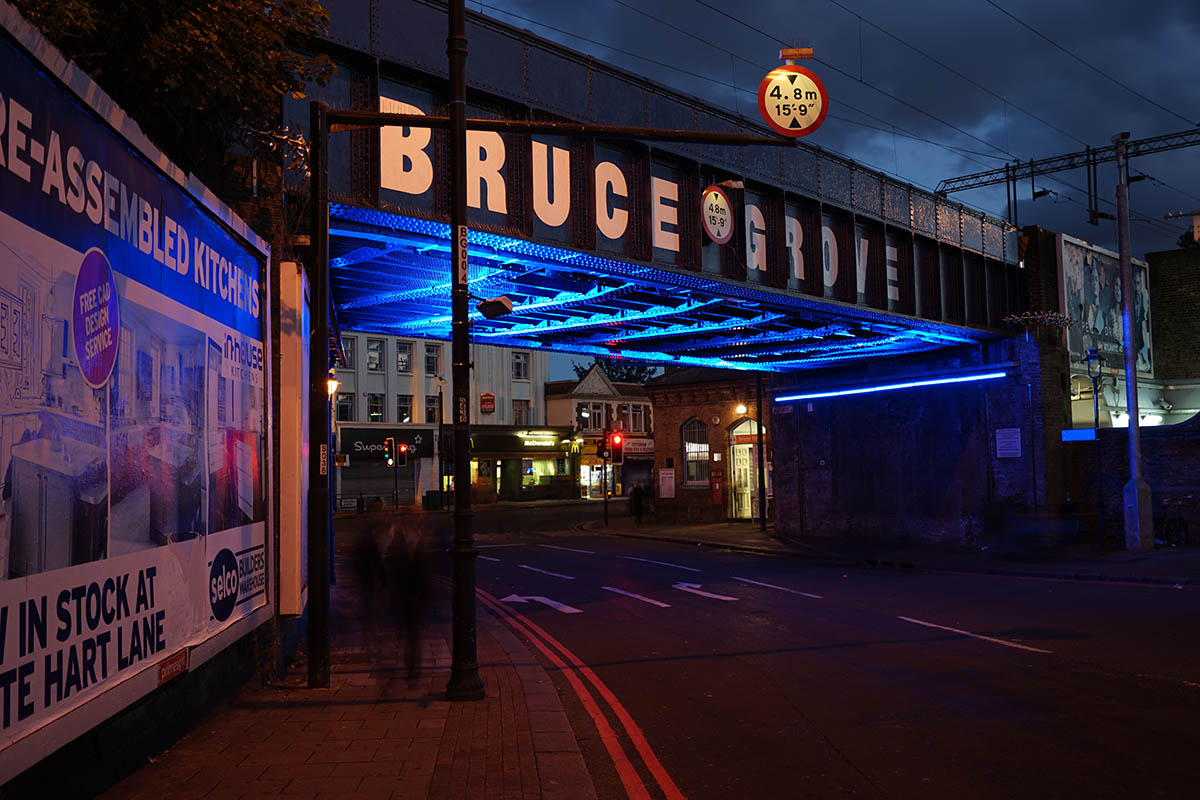 Located near the Bruce Grove Station, the bridge is part of the GLA (Greater London Authority) funded initiative “Growth on the High Road”, which features a series of wider environmental improvements in the Tottenham High Road area. These projects promoted by Haringey Council and led by architects Adams & Sutherland, are a great example of how small changes can contribute to an enhanced sense of place and to local identity. Besides looking tatty and unattractive, the Bruce Grove railway bridge was also seen as rather unsafe for pedestrians, especially at night.