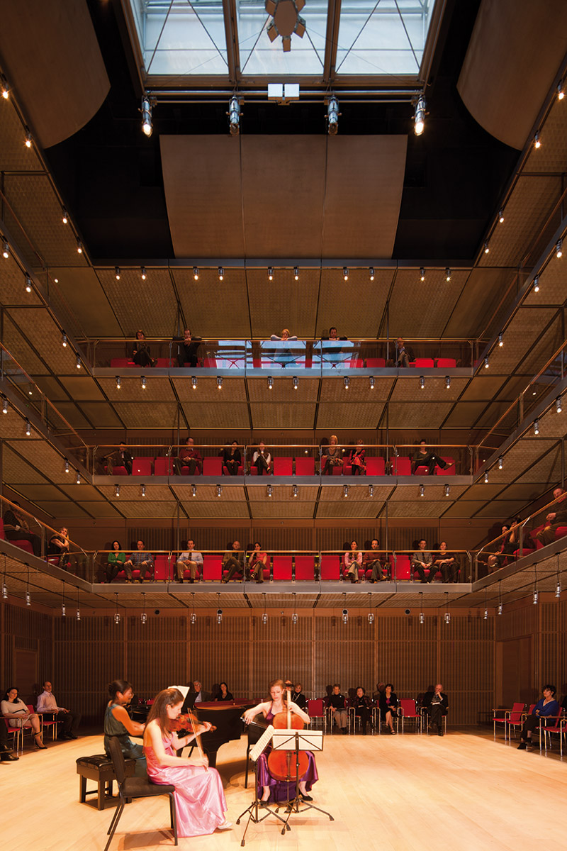 The Isabella Gardner Museum has recently agreed to build a new extension on account of the continuous increase in visits over recent years. The extra space is needed not only to provide visitors with extra facilities, like rooms for concerts and special exhibitions, but also to create space for conservation and restoration. To create this new area the museum turned to the architect Renzo Piano, whose masterful design succeeds in respecting its context while clearly talking the language of contemporary architecture. The museum's original building, the starting point for the extension, was opened in 1902 by the collector Isabella Stewart Gardner who gave her name to the museum. This lady art lover came to Boston from New York in 1860 when she married Lowell Gardner, one of the city's wealthiest men and together they purchased numerous artworks from the Medici family. At this point Isabella decided to build a Renaissance style Venetian palazzo in a new area of Boston just outside the city. The building, destined to become the Gardner Museum, was designed around a central courtyard that was kept full of flowers, while the walls inside were adorned with paintings by Raphael, Titian, Giorgione, Piero della Francesca, Paolo Uccello, Botticelli, Vermeer, Rembrandt, Degas, Manet and John Singer. The building's new wing is located behind the original complex and is built of glass and oxidised copper, which adds a touch of green to the structure that links it to the parkland behind. The central feature of the architectural composition, though, is the natural light that enhances the soaring height of the entrance. This space is also light up at night by suspended Le Perroquet luminaires that turn the structure's glass design into a kind of lantern for the city. The first of the four extension blocks is the 6000 m², 300-seat concert hall, called the Calderwood Hall. It is the largest space and has a distinctive vertical design. At the centre is the stage and around that, along the walls, are a series of boxes that create a close and intense relationship between space and music. Here, too, suspended Le Perroquet luminaires have been used to animate the lofty space.
