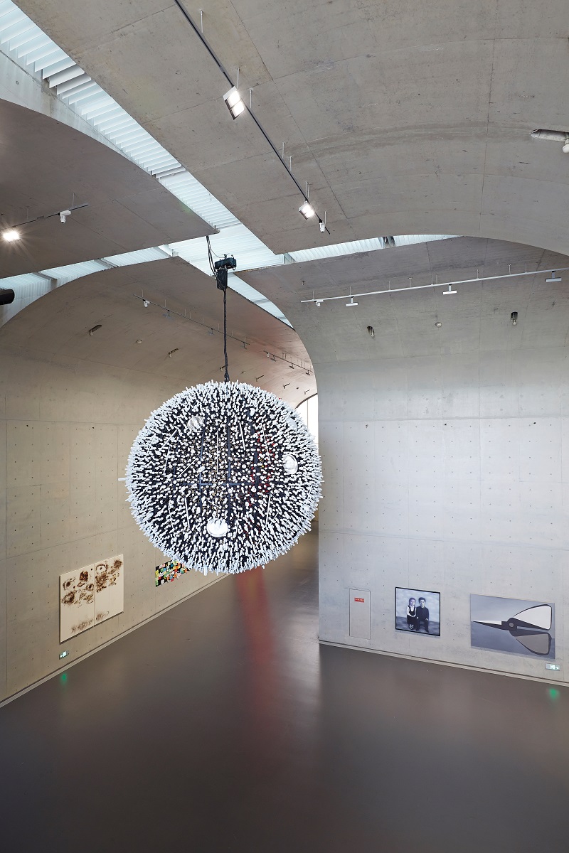 Thanks to these walls the first underground car park floor has been transformed into a display space, whereas on the ground floor the different directions of the umbrella vaulting – that houses the structure's electrical and mechanical systems – highlights the multiple shapes of the different volumes. The materials used and the building's simplified contours produce an environment that unites strength with lightness. LED Primopiano spotlights have been used in all the rooms to create visual unity. These luminaires were chosen for their simplified form and a range of optics that offers both highly focused effects on the paintings on the walls and diffused, even lighting in the spaces reserved for installations.