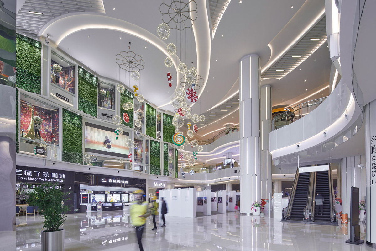 In Lvbao Square, the main mall in the area has created an open air space with a festive, brightly coloured lighting system, designed by Paul Gunawan’s Litac Consultant studio.