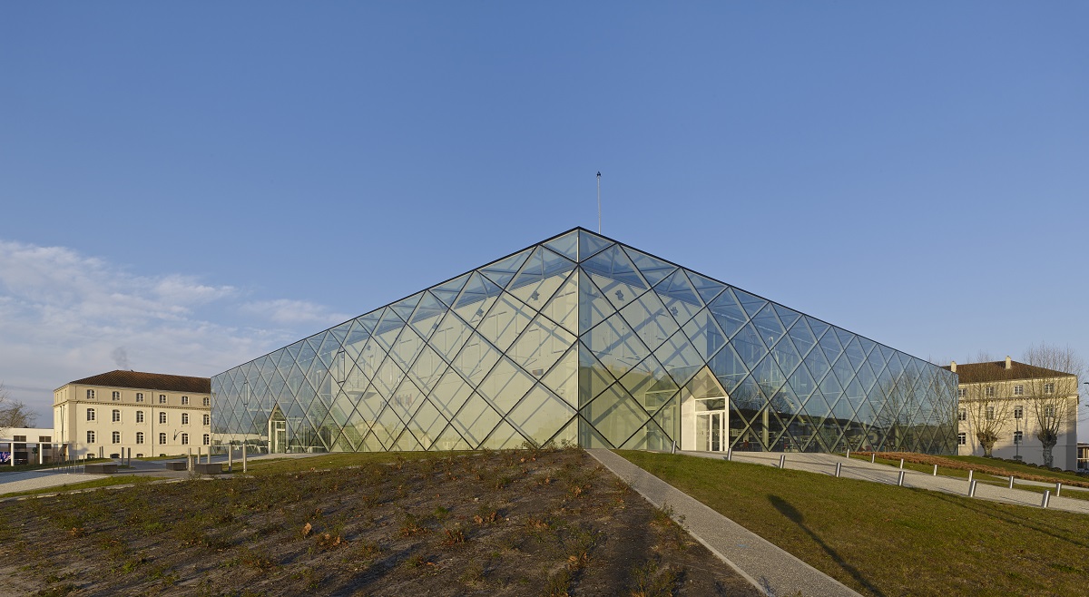 The media library is close to the centre of Mont de Marsan, in the Bosquet barracks area, where it fits in perfectly thanks to the pure geometric lines of the new building. However, its corner opening tones down its severity. This opening begins a rotating movement and creates a pull starting from Avenue du Maréchal Foch. One of the strong points of the design is also the quality of the public space created, since the area around the building is freely accessible. The media library facades differ only in their orientation: there isn’t a single main facade. Instead there are four. Jacques Sebbag of the firm Archi5 designed the artificial lighting based on the architecture and the atmosphere of the various spaces formed by the furniture and natural light. The basic idea is that of gradually passing from a type of lighting with a lot of natural light, to softer, more intimate lighting, of the kind you find in a home, at the consultation tables, and on to practical lighting for choosing books in the shelving area. The media library is completely glazed, so the main aim was to create a balance with the constant presence of natural light. When evening comes, the media library becomes an “urban lantern”, lighting up the surrounding greenery, pathways and reading areas. That means that it also contributes to the quality of the public area.