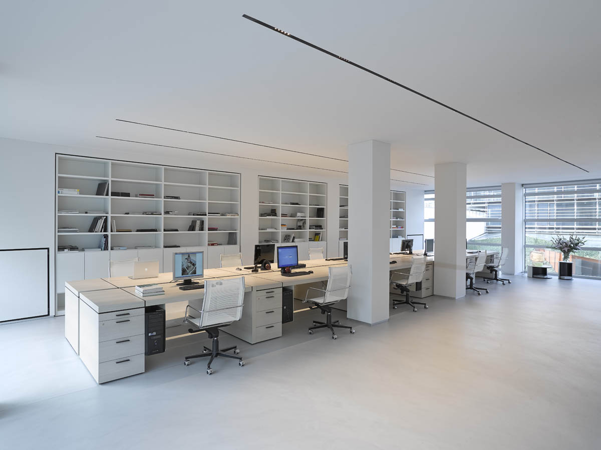 The architect Matteo Nunziati works in Milan since 2000. The headquarters of his studio is located in the north-west of the city, where are springing up all the big redevelopment projects in order to give new life to the area that from the center (Varesine - Porta Nuova) arrives at the New Exhibition center of Rho, the biggest in Europe, and the Expo 2015 area, a strategic location far few minutes from the historic center and close to the main factories of international design. The office deals with interior architecture and design and works with major companies in the furniture, lighting. its spaces were illuminated with our products. In the large open space and in the meeting rooms were used IN30 High Contrast DALI. the entrance and the small copy shop are lit with direct light controlled luminance and high visual comfort (UGR <19). For the bathrooms and kitchen were chosen IN30 Low Contrast and Deep Laser. Two minimal solutions but with excellent performance. Matteo Nunziati won several prestigious design awards, including the most recent: Good Design Award 2011 (Chicago - USA), Wallpaper Design Award 2011 (UK), Cityescape Award 2013 (Saudi Arabia). Specialized in designing luxury hotels, wellness center, SPA and residential projects, he has carried out projects in Italy, Switzerland, Poland, United Arab Emirates, Qatar, Saudi Arabia, Kuwait, the Maldives and China.