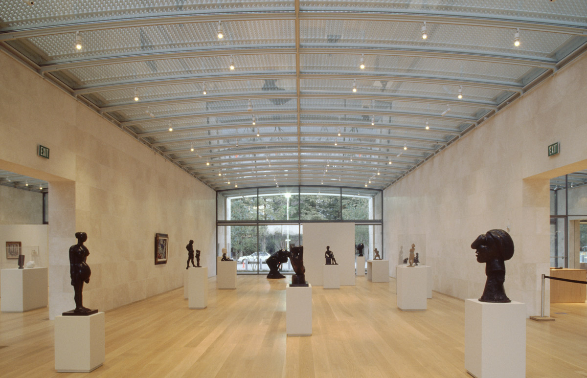 Ray Nasher is a successful Texan businessman and the owner of one of the largest sculpture collections in the world. Having recently decided to display his collection to the public, he has ordered the construction of a 16,000 square metre museum with two acres of parkland in the centre of Dallas. The museum has two floors. On the ground floor there are three galleries, offices, a meeting room and museum shop. While on the basement floor there is only one gallery for light sensitive exhibits, various amenities and an auditorium. Outside the garden descends to the auditorium in a series of terraces that create an open air theatre. The galleries consist of travertine marble walls and glass facades that offer a completely open view that stretches from the street, right through the building and along the entire length of the garden. It is these perspectives that give the building its unique sense of lightness and transparency. The project is specifically designed to maximise the influx of natural light that caresses the different shapes and textures of the statues. And this effect is further enhanced by the accent lighting of a series of Le Perroquet luminaires installed on tracks.
