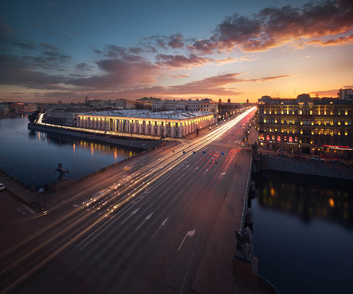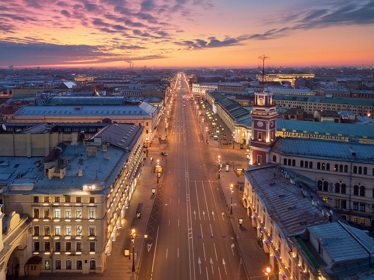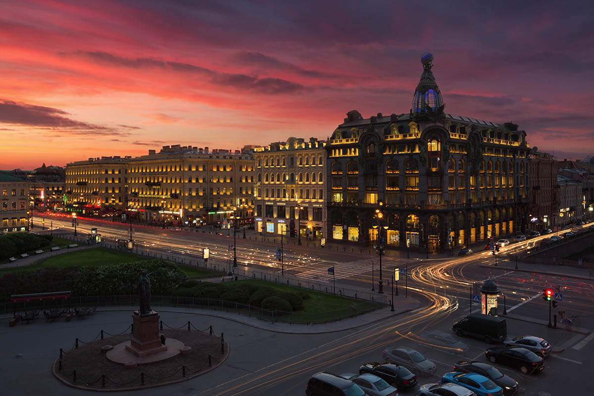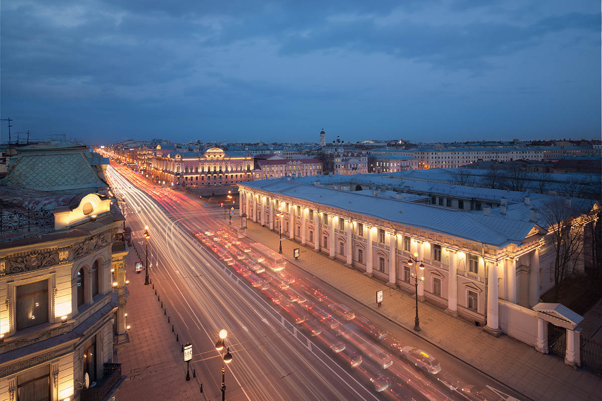The Nevsky Prospect is the main thoroughfare of St Petersburg, a busy place, and the traditional centre of city life. By reputation, St Petersburg is one of the few European capitals to retain the perhaps rather provincial concept of a town centre. Locals and tourists alike congregate there: Gogol described the Nevsky Prospect as Petersburg’s universal point of convergence. The central character of the place has precise historical connotations. In 1737 a special town planning committee was set up to rule on how the city would develop around a central location - the Nevsky Prospect of today. So it was that the nobility began building fine palaces, although none of these was permitted to exceed the Winter Palace in height. Since the Nevsky Prospect took shape over a relatively long period of some 150 years, it is lined by buildings in different styles, from baroque to modern, and a stroll along its 4.5 km offers what amounts to a potted course in the history of Russian architecture. The lighting design implemented along the avenue aimed at rendering the illumination visually homogeneous on what is such an important arterial route through the city. Different fixtures are used, combining to produce various effects. Linealuce units are mounted on cornices, Radius fittings throw blades of light onto windows, whilst Platea and Maxiwoody floods are used as wall washers.