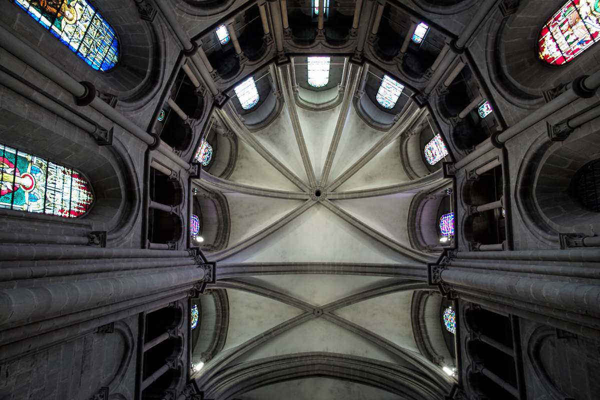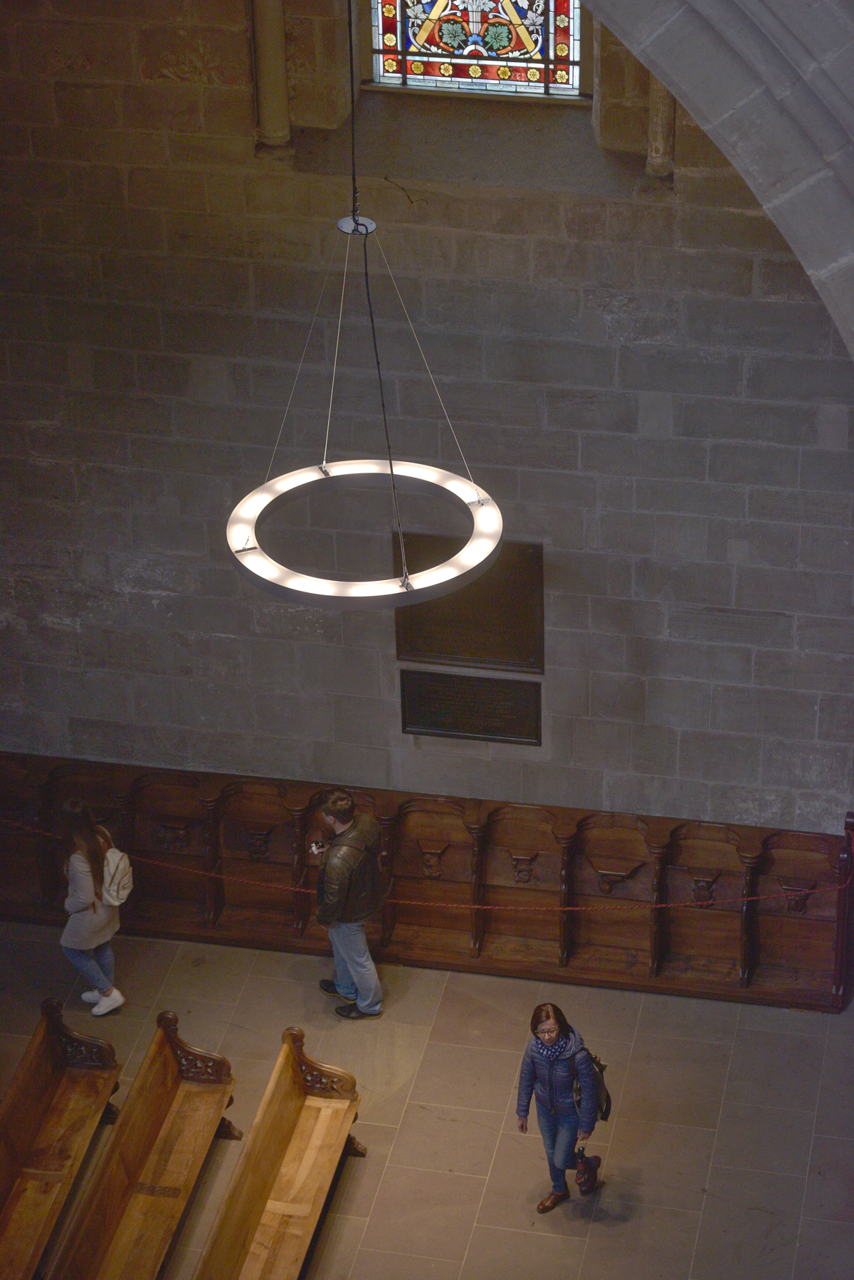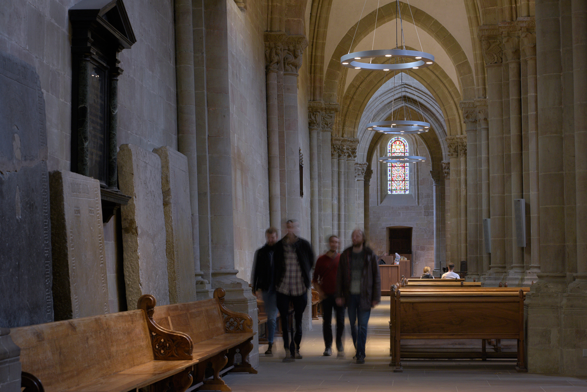 Having been stripped of all decoration during the Reformation, the cathedral’s interior is bare, austere and distinguished mainly by the bold rhythm of its pillars. During the day, sunlight filters in through high, stained-glass windows that create a soft, even, diffuse light that is naturally dynamic and changes colour and quality according to the time of day and year. The artificial lighting respects the building’s architecture and atmosphere by using low level, high contrast lighting with a colour temperature of 3000 K. The form of the large circular chandeliers that previously hung midway between the ceiling and floor in the central nave and side aisles was also kept. This old-fashioned style of lighting was maintained for its aesthetics, but the materials and lamps were updated and are now operated by a modern control system.