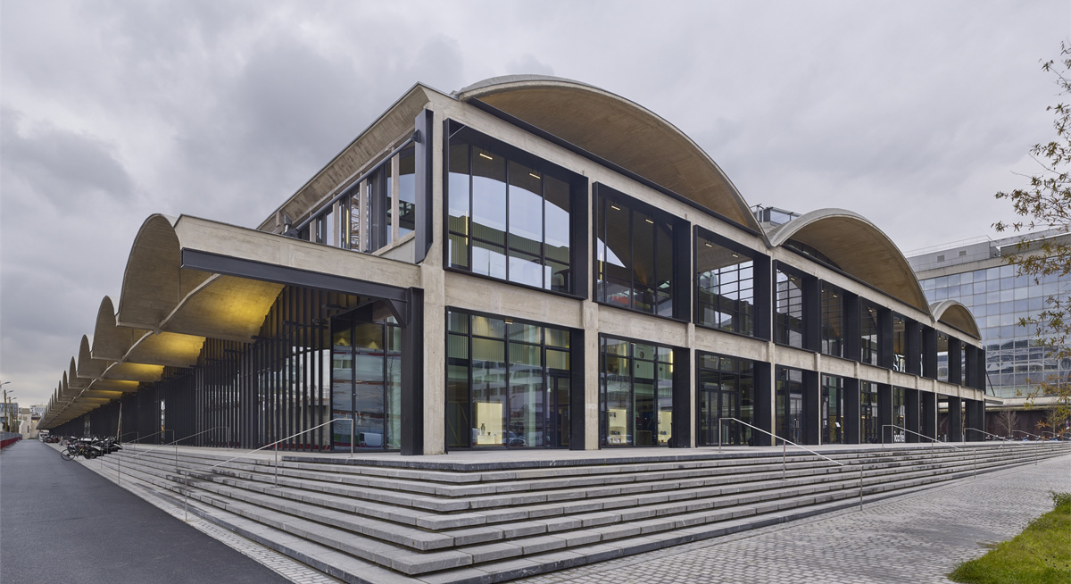 The facility is housed in the 34,000 square metre, former Austerlitz Station rail freight depot, built between 1927 and 1929 by the engineer Eugène Freyssinet. Halle Freyssinet, as the building was originally known, is a splendid building constructed of pre-compressed concrete with an extraordinarily light load-bearing structure based on an innovative technique later patented by Freyssinet. Thanks to this highly original characteristic in 2012 Halle Freyssinet was officially nominated a historical monument.