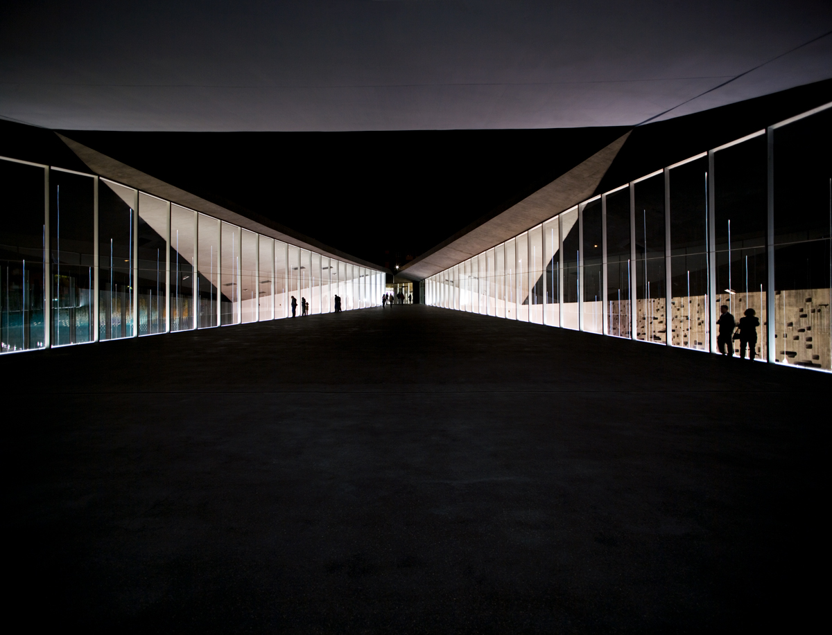 The preparation of the concrete frontages, punctuated with pixel-like perforations that provide the building with a truly singular type of lighting, serves both to enable a unique distribution of natural light admitted during the daytime, and produce a magical radiation of artificial light from interior to exterior at night- time. iGuzzini was involved in the design of the lighting system, providing expert advice and supplying products to meet the many different requirements presented by the different areas( The exterior is illuminated by recessed