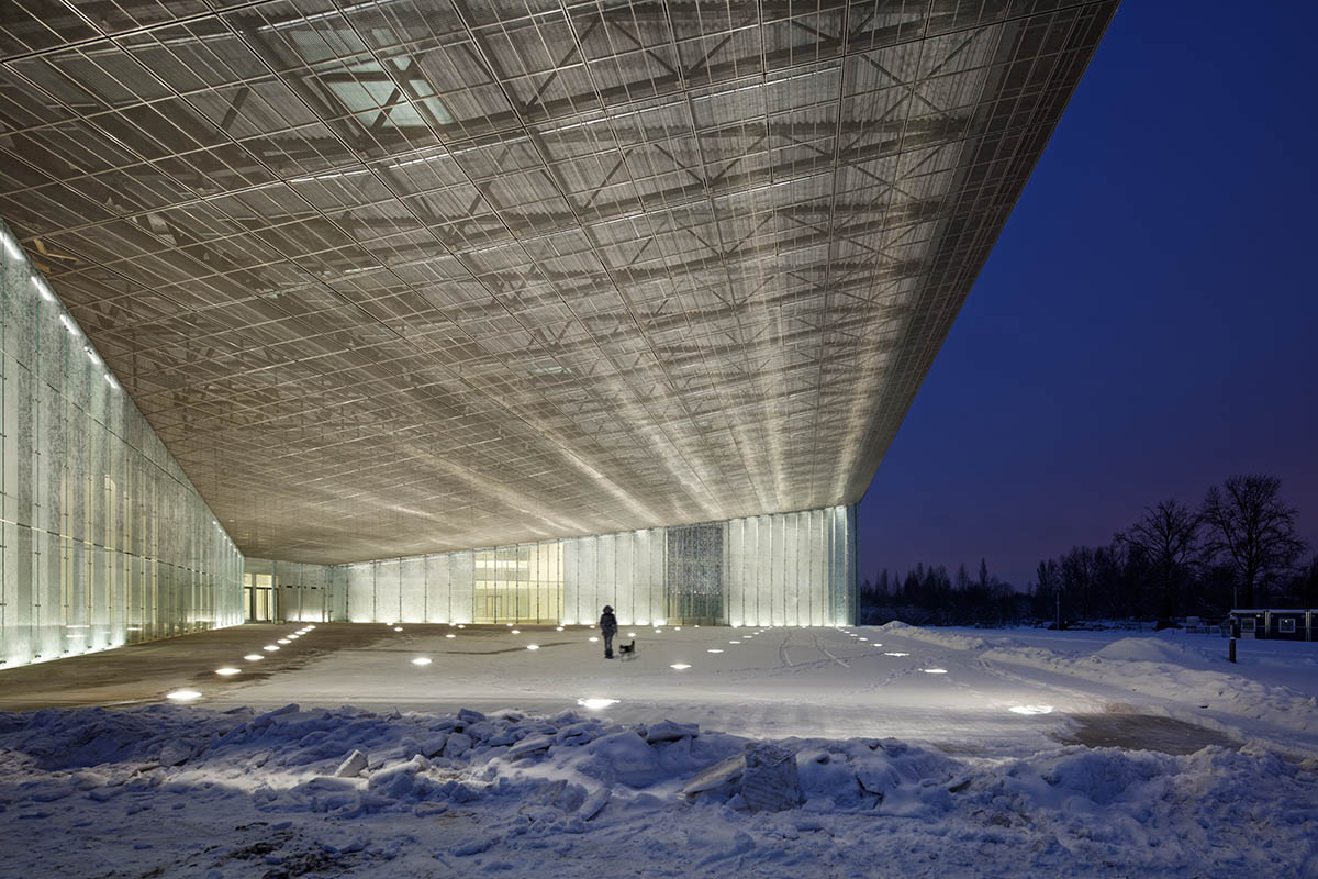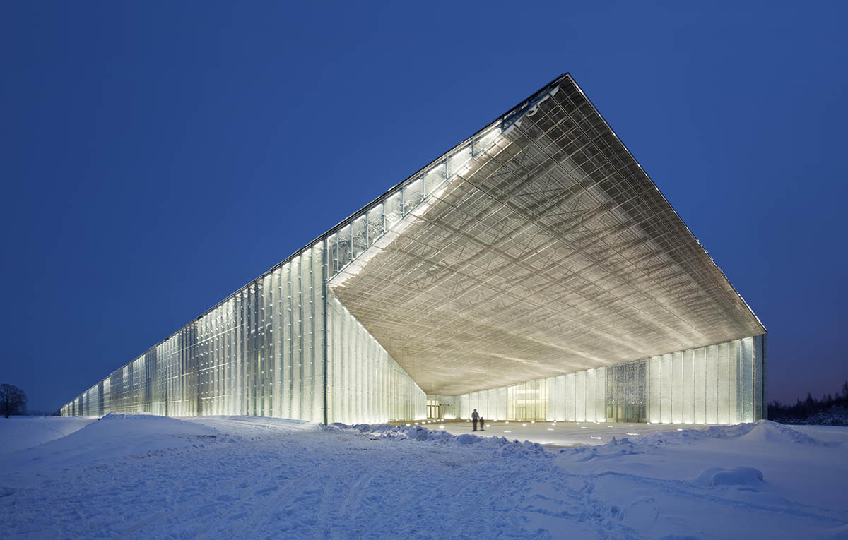 This museum shaped like an elegant glass box, is located outside the town of Tartu, on a former Soviet air force base