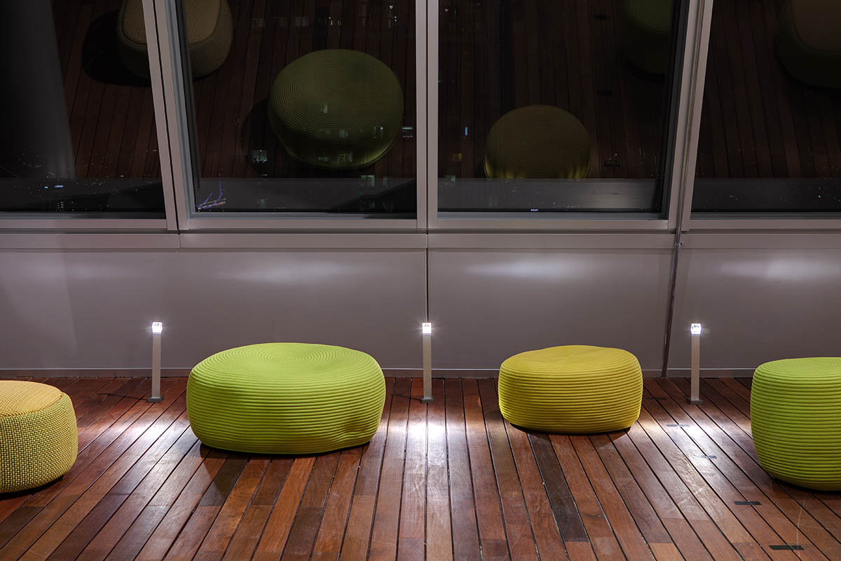 In the square opposite the building, three Albero devices have been installed. This luminaire is an entertaining interpretation of a natural tree, designed by Enzo Eusebi. The interiors are lit with Glim Cube luminaires, especially in customer waiting areas, where an original application of the stake installation of this device has been used to attach it to the parquet floor. In the offices and meeting rooms, on the other hand, recessed Laser Blade and Laser Blade System 53 devices with a special colour temperature of 3300 K and a colour rendering index of 90 have been used.