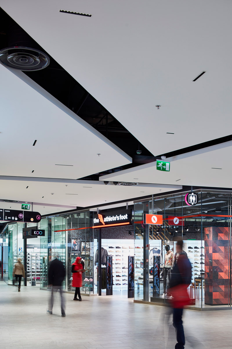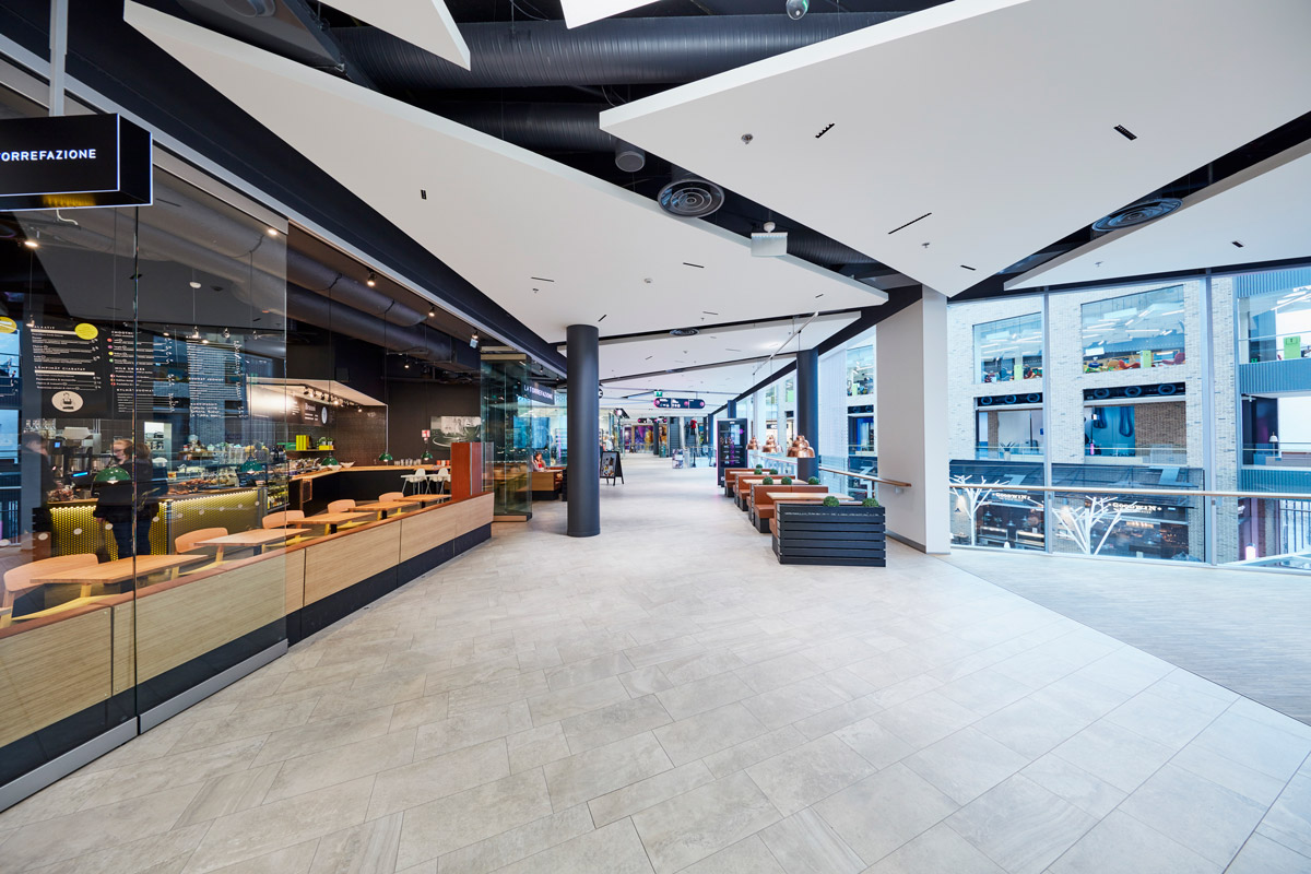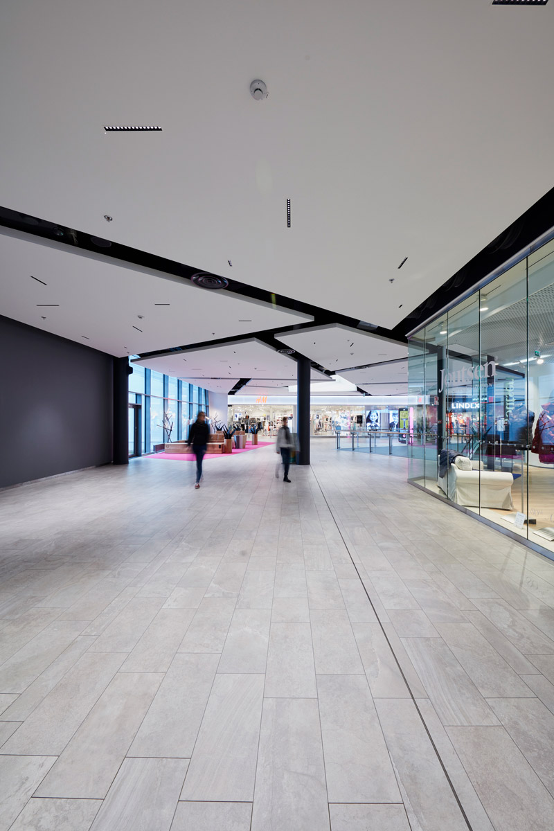 so Omena (Finnish for “big apple”) is a pleasant shopping centre full of services and more than 180 stores focused on fashion, leisure and wellness, as well as the classic supermarket. The centre is part of the Citycon group, which builds and manages urban shopping centres in Northern Europe and the Baltic. It is the market leader in Finland, and amongst the market leaders in Norway, Sweden and Estonia. Citycon shopping centres are located in strategic points, with good connections to public transport, healthcare facilities and municipal services. The same Iso Omena is rapidly becoming the centre of the city and home to social and healthcare offices on the third floor. Functional and enjoyable, the design of the centre features white as the dominant colour and glass walls that maintain a constant relationship with outside, especially through the large skylight in the central area, above the square which is the meeting and relaxation point.