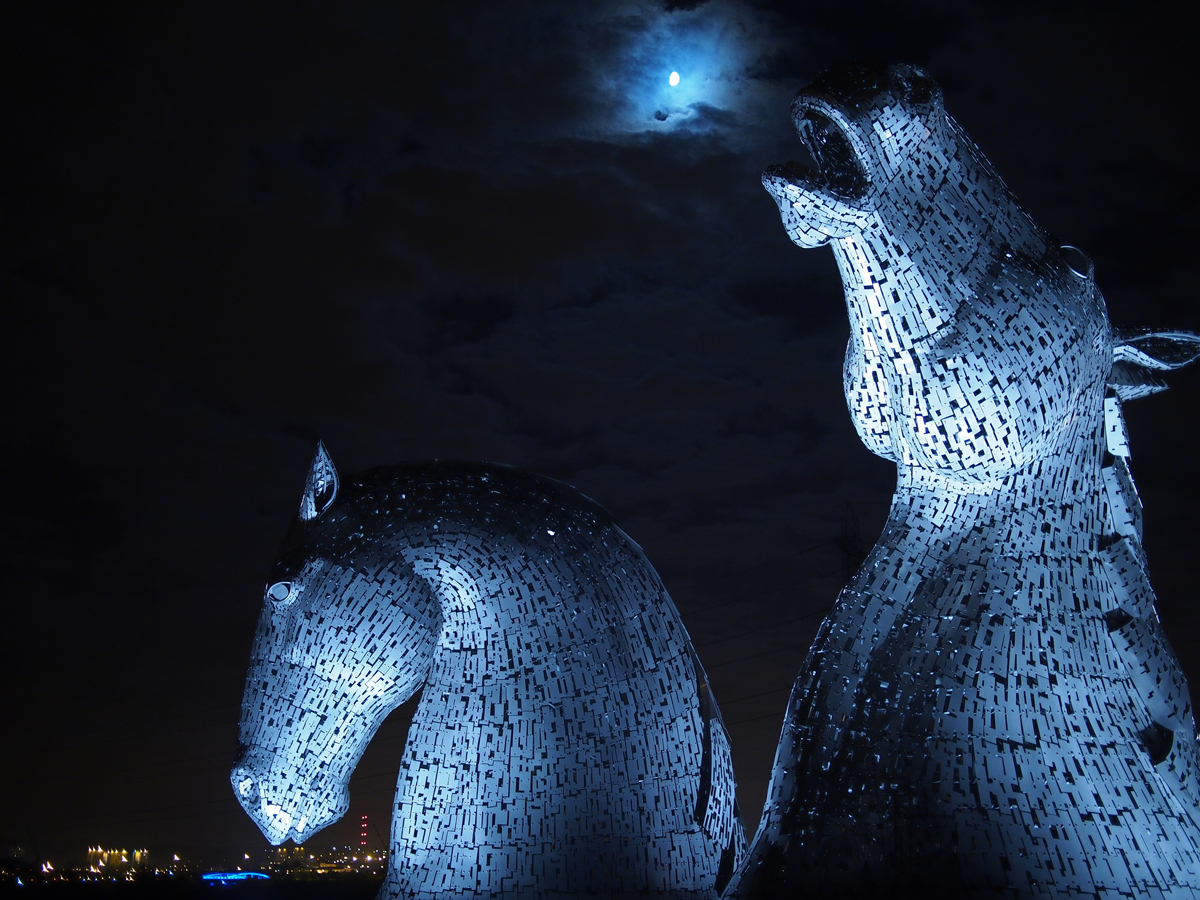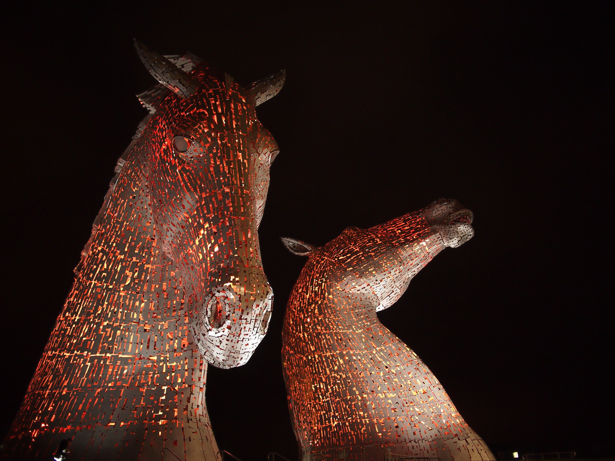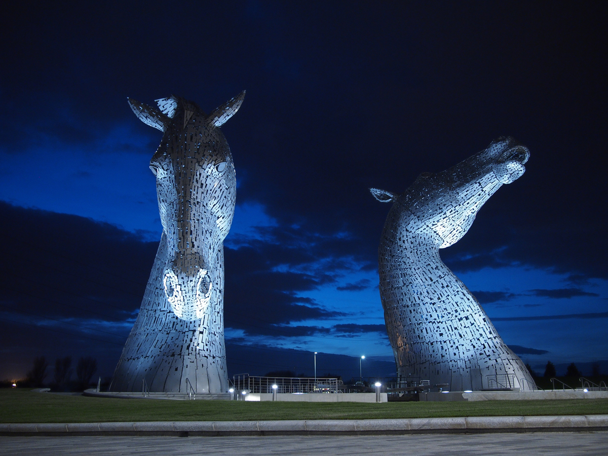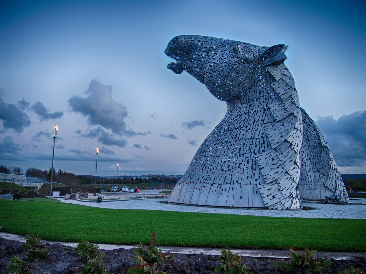 The Kelpies are the main attraction of the Helix Park in Falkirk. The metal sculptures, weighing 300 tonnes and standing about 30 metres high, reproduce the heads of two horses. Designed by the sculptor Andy Scott they are a homage to the horse, an animal which played a fundamental role in the work carried out along Britain’s canals, such as pulling barges. The name originates from the mythical creatures that, according to ancient Scottish legends, live in lakes and canals and can take the form of a horse.