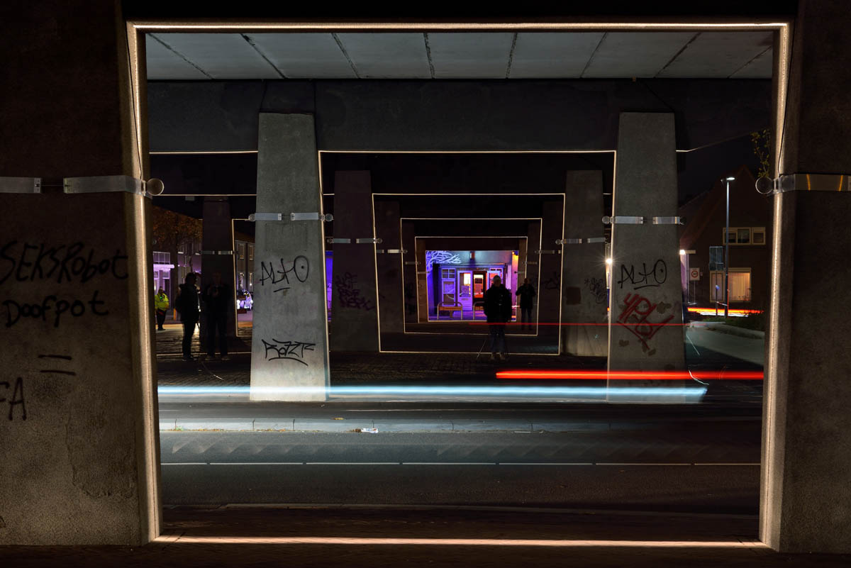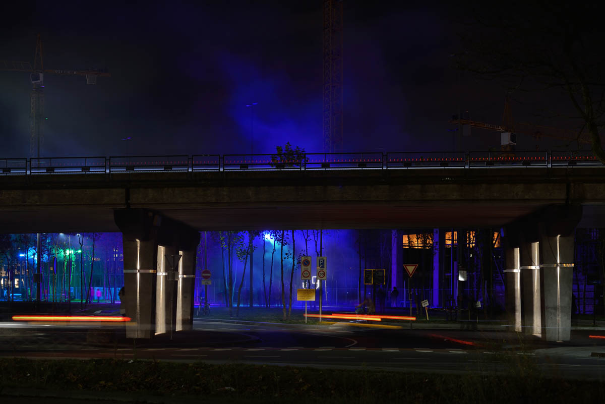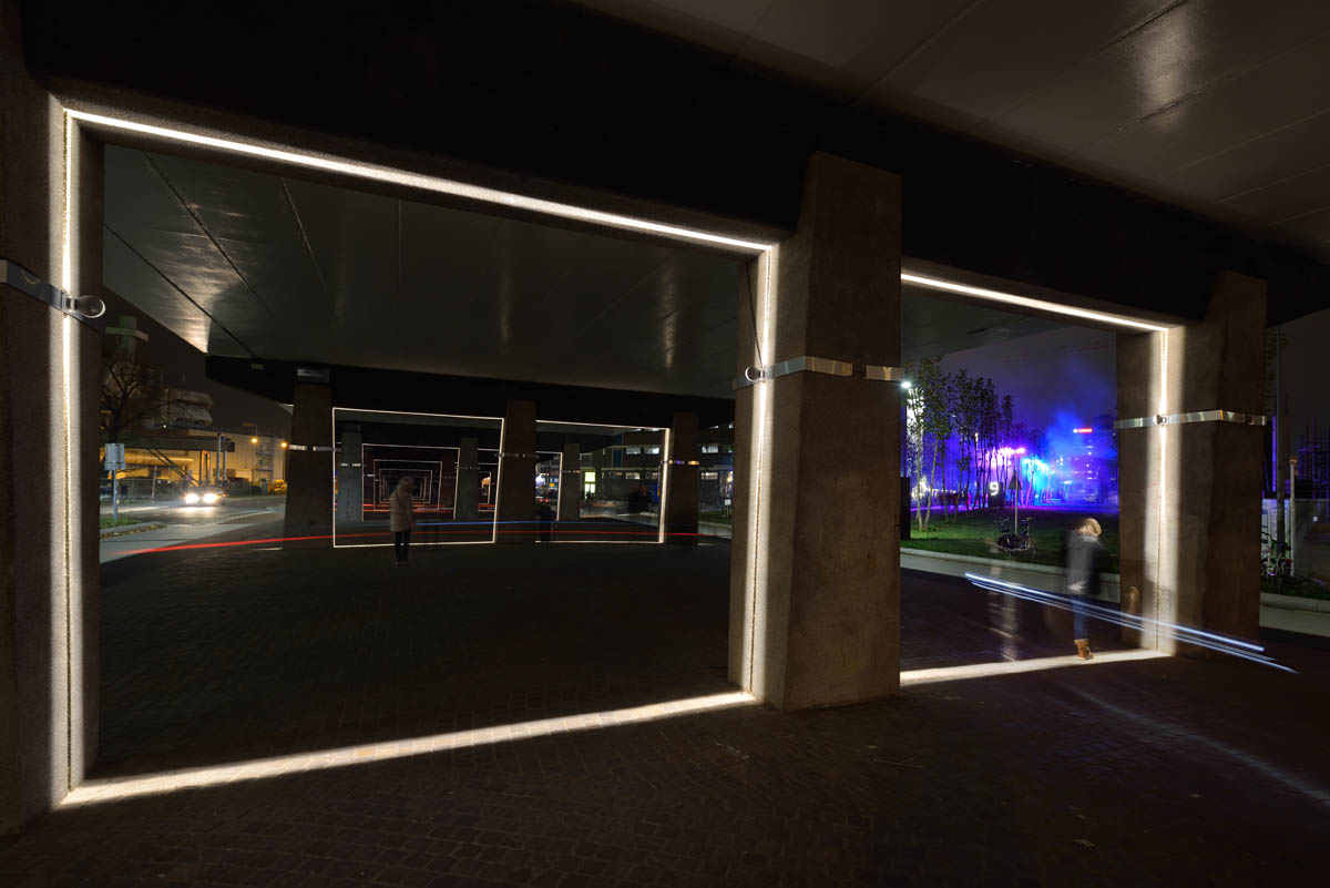 iGuzzini illuminazione worked together with Bosch, Smartlight and the local artist, Jaap van den Elzen, to creare “Velocity”, an installation based on a smart lighting system. The installation focuses on a type of urban area that is generally ignored and often neglected, like the lower part of a viaduct. In this case, the artist has connected lighting variations to the speed and number of cars driving across the suspended road.