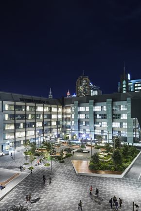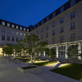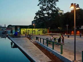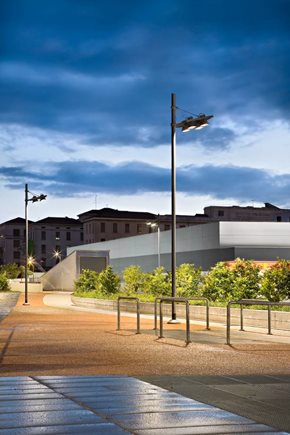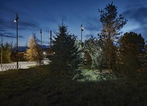 The optical assembly is equipped with closing glass and sealing gasket at the front, guaranteeing water tightness. Special apertures on the frame allow rainwater to run off. The projector offers seven different types of luminous distribution (superspot, spot, medium, flood, light sliver, elliptical and road). The fixture is equipped with a double cord grip for through wiring.